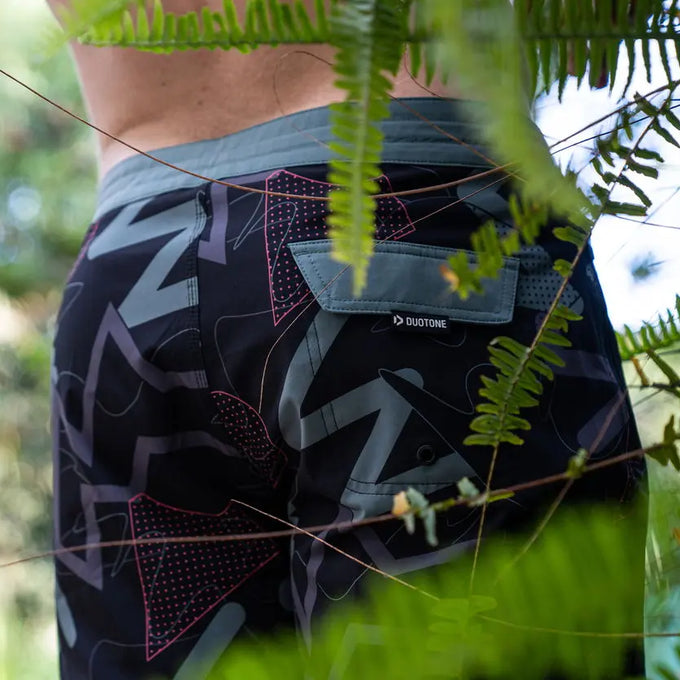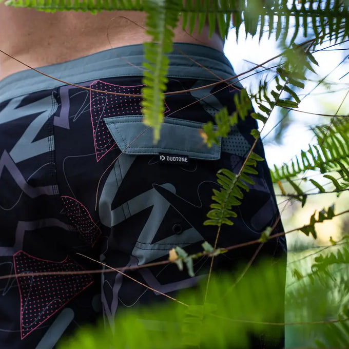 Heben Sie sich mit diesem charakteristischen Muster von Duotone ab. Eine Hommage an die 80er Jahre und doch für heute gemacht, bietet unsere neue Boardshorts für Männer einen einzigartigen Look in zwei faszinierenden Farbvarianten. Die Länge von 19 Zoll, der Bund mit Kordelzug, die seitliche Reißverschlusstasche und die Gesäßtasche mit Reißverschluss bieten alles, was man sich von einer Boardshort wünschen kann.
