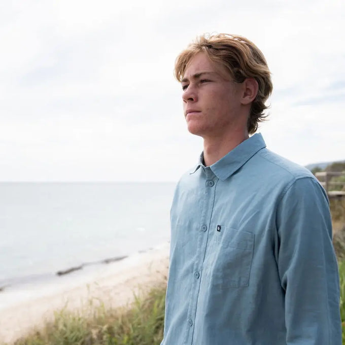 Ob am Strand oder auf der Straße - unser Breeze-Langarmhemd verbindet klassisches Design mit einem stilvollen Look, der Sie mühelos vom Büro über den Strand bis hin zur Bar begleitet.