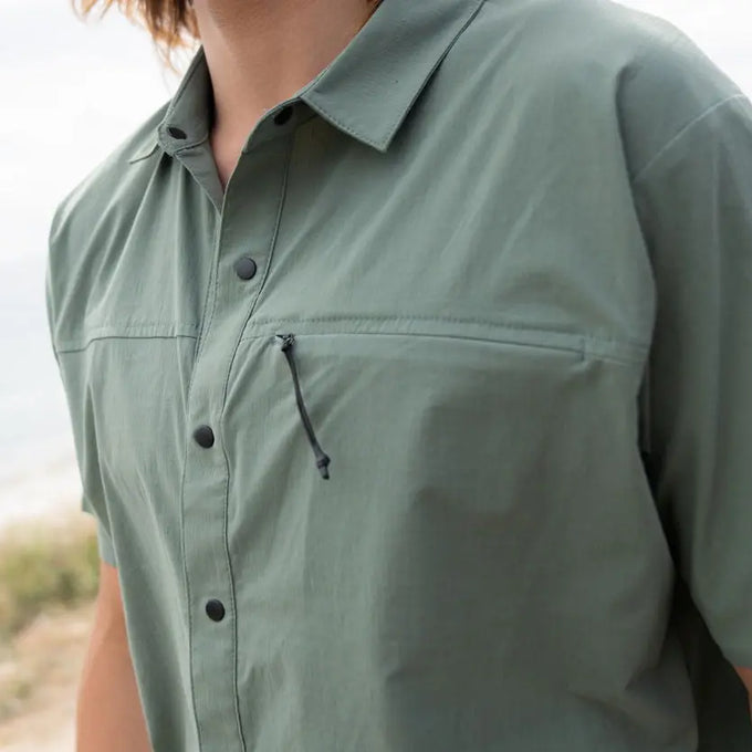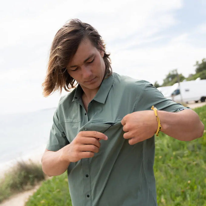 Unser neues kurzärmeliges Unisex-Hemd Wave ist aus hochwertigen Materialien gefertigt, die selbst den wählerischsten Kunden zufriedenstellen. Mit seinem schmeichelhaften und dennoch entspannten Schnitt, der Knopfleiste, dem klassischen Kragen und der kleinen Reißverschlusstasche werden Sie kaum eine Gelegenheit finden, bei der diese Passform nicht genau das Richtige ist.