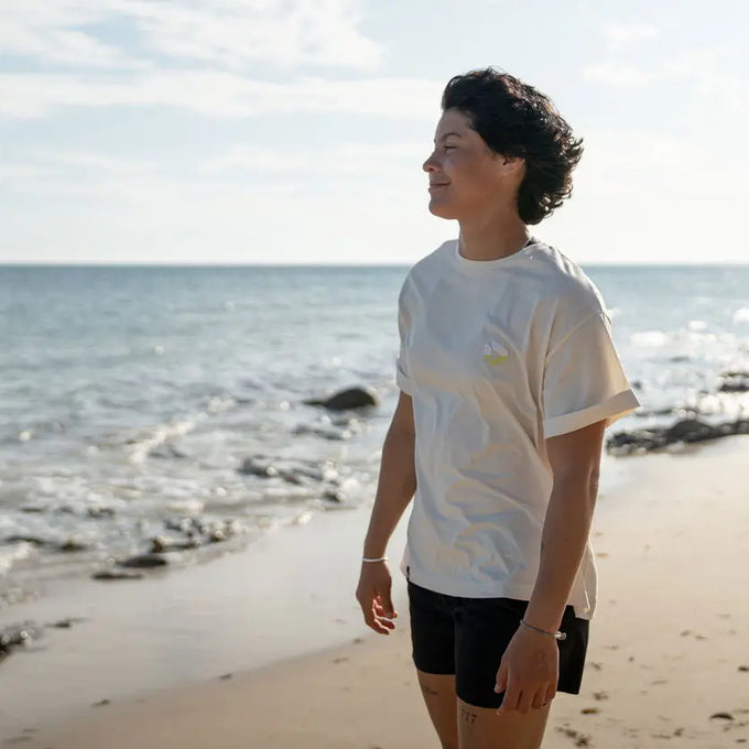 Ihr neues Lieblings-T-Shirt! Ein kastenförmig geschnittenes T-Shirt mit überschnittenen Schultern und einer Länge, die genau zwischen Cropped und Oversized liegt, macht unser Undyed Whisk T-Shirt für Frauen zu einem einfachen Kompliment für jeden Freizeitlook.