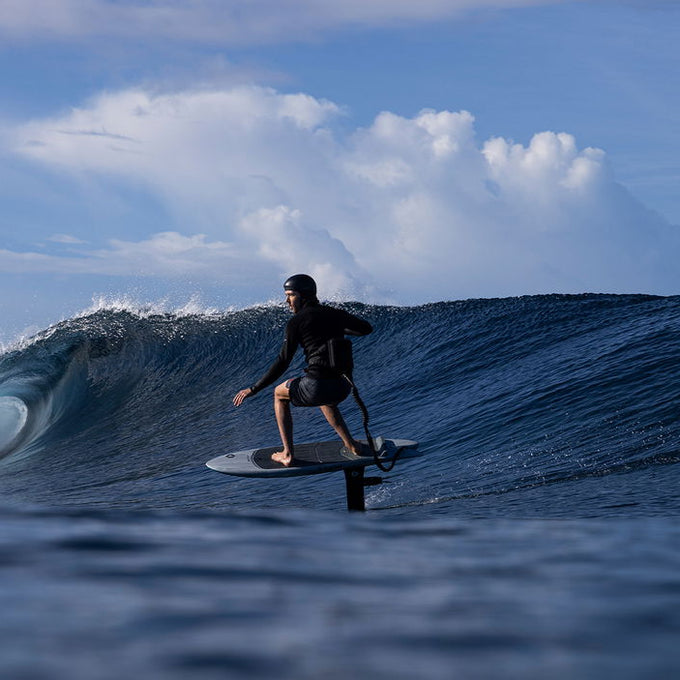 Die Foil Assist Fernbedienung – ein wasserdichter Smartwatch-Controller mit Fingerring – hält deine Hände frei, sodass das Aufstehen, Paddeln, Duck-Diven, Carven oder das Halten des Wings deutlich einfacher wird. Aktiviere den Motor mit einem Doppelklick auf die + Taste und steuere die Geschwindigkeit, indem du die + oder - Taste betätigst und gedrückt hältst.