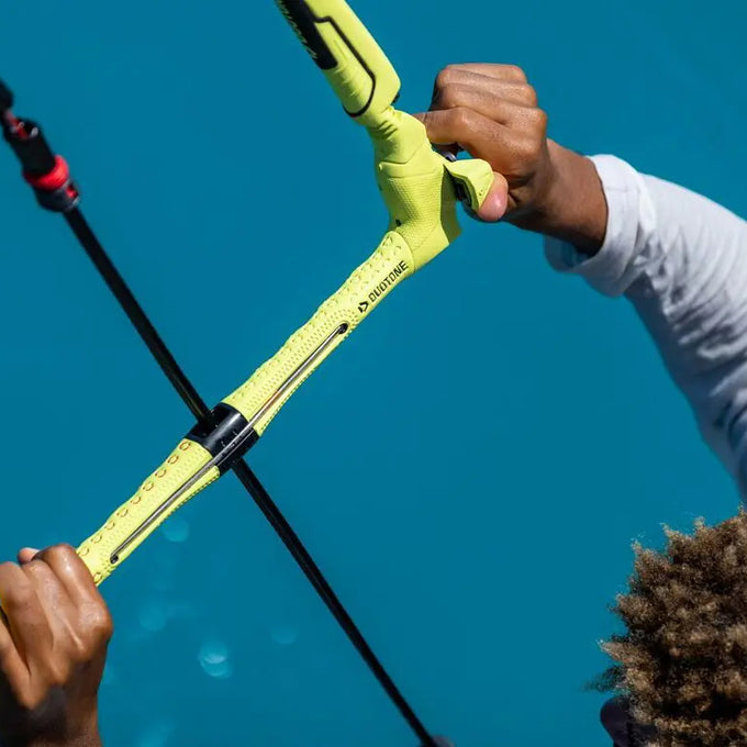 Mit dem ultimativen Steuersystem von Duotone kannst du deinen Kite trimmen, ohne die Hand von der Bar zu nehmen. Vor Jahren hat es die Kite-Branche revolutioniert und jetzt wurde es überarbeitet, um es noch besser zu machen – mit dem neuesten Iron Heart VI Click-in-Sicherheitssystem und FLITE99 Leinen. Erhältlich in Medium mit einer 49-cm-Bar mit 22-m-Leinen und 2-m-Verlängerungen oder in Small mit einer 42-cm-Bar mit 20-m-Leinen und 2-m-Verlängerungen.