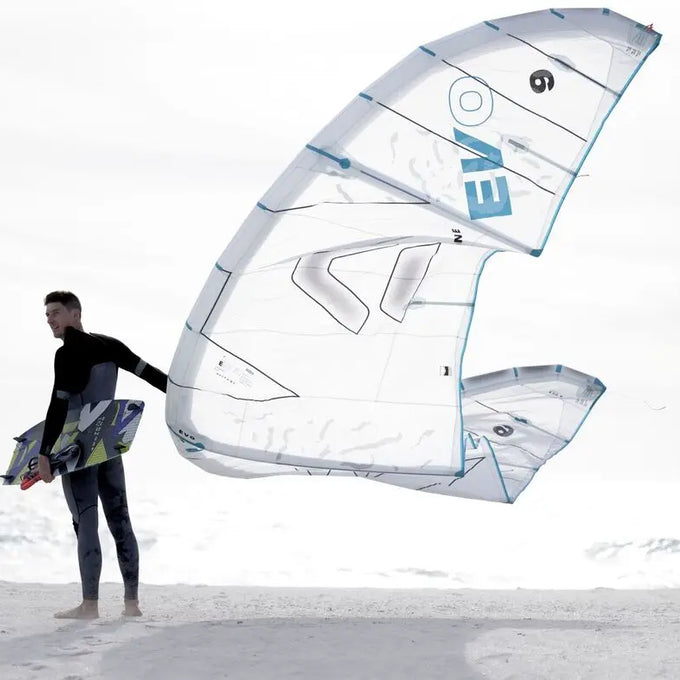 Der Evo Concept Blue gehört zu unseren beliebtesten Kites. Performance und Vielseitigkeit in einer Vielzahl von Disziplinen, gepaart mit einer neuen, umweltfreundlicheren, ungefärbten Konstruktion, lassen ihn aus dem Sortiment hervorstechen. Dieser vielseitige 3-Strut-Kite wurde sorgfältig entwickelt, um bei allen Bedingungen beeindruckende Leistungen zu erbringen, egal wie du dich entscheidest, ihn zu fahren. Die perfekte Wahl für alle, die den Nervenkitzel beim Freeriden und Boosten von Big Airs lieben, aber auch gerne Hooked-Freestyle-Tricks hinlegen und sich dem Wave Riding hingeben. Er ist einfach die ideale Wahl für Fahrer, die sich keine Grenzen setzen lassen wollen. Der Evo Concept Blue verkörpert echte Vielseitigkeit und ist sowohl für erfahrene Profis als auch für Neueinsteiger geeignet. Im Hinblick auf Sprünge ist der Evo Concept Blue kaum zu schlagen. Er bietet eine himmlische Hangtime, die dir viel Zeit lässt, um Kiteloops hinzulegen, wobei dir nur von deinem eigenen Wunsch, höher zu fliegen, Grenzen gesetzt werden. Egal, ob du auf flinke, präzise Loops oder atemberaubende Mega-Loops stehst, der Evo Concept Blue reagiert auf deinen Input an der Bar und liefert Loops jeder Art und Größe. Außerdem bietet der Kite mehrere Tuning-Optionen an den Tips, mit denen du ihn auf deinen jeweiligen Fahrstil abstimmen kannst. Der Evo Concept Blue hat aber noch mehr zu bieten als nur Performance. So verfügt er über eine hochmoderne, umweltbewusste Konstruktion mit ungefärbten Stoffen, die den Einsatz von Wasser und Chemikalien bei der Produktion reduzieren, bahnbrechende Bladder auf Biobasis und Komponenten aus recyceltem Kunststoff. Diese Innovation verbessert nicht nur den ökologischen Fußabdruck, sondern unterstreicht auch unser Engagement für Nachhaltigkeit. Lass dich nicht von der Wahl deines Kites definieren, sondern lass deine Fahrkünste für sich sprechen. Ganz egal, für welchen Stil du dich entscheidest, oder worauf du gerade Lust hast – mit dem Evo Concept Blue kannst du dich auf deinen Kiteboarding-Abenteuern garantiert zu neuen Höhen aufschwingen.