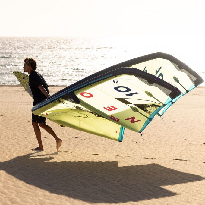 Zu den neuesten Verbesserungen des Neo SLS gehört eine verbesserte Wing-Tip-Konstruktion, die für eine schnellere Steuerauslösung und ein geschmeidigeres Drehen in allen Situationen sorgt. Die optimierte Länge der Segellatten ab Größe 8 reduziert das Flattern an der Abrisskante und sorgt für ein optimiertes Fahrgefühl. Die innovative, leichtgewichtige Lattentaschenkonstruktion trägt weiter zur Gewichtseinsparung bei, ohne die Haltbarkeit zu beeinträchtigen. Erlebe eine höhere Leistung durch schnellere Lenkeinleitung und sanftere Turns, mit minimalem Flattern an den Wingtips für präzise Kontrolle. Genieße das intuitive Bar-Feedback, das es dem Fahrer erlaubt, sich voll und ganz auf das Navigieren in den Wellen zu konzentrieren, während er den Kite mühelos durch die Luft manövriert.