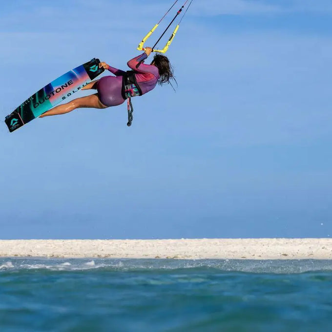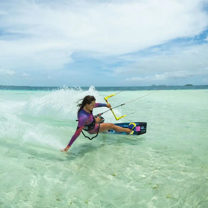 Als Kiteboarderin ist es wichtig, Equipment zu haben, das auf einen kleineren Körperbau und ein geringeres Gewicht abgestimmt ist, wenn du kein zu steifes und schwer zu carvendes Board fahren willst. Hier kommt das neue Soleil ins Spiel, ein Board, das von Frauen für Frauen entwickelt wurde. Mit seiner schmaleren Outline hast du jede Menge Spaß beim Carven von Rail zu Rail, während die größeren Space-Flex-Fenster in den Tips für ein smoothes Fahrverhalten bei allen Bedingungen sorgen. Das Oberdeck wurde ebenfalls verändert und ist nun asymmetrisch, wodurch der Flex auf die Fersen-Edge des Boards konzentriert wird, wodurch es leichter anzukanten und zu poppen ist. Für 2024 wurde die Concept Blue-Range um das Soleil erweitert, das sich durch eine nachhaltigere Bauweise auszeichnet und viel Performance bietet. Flachsfaser ersetzt hier das herkömmliche Glasfasergewebe und bietet hervorragende Dämpfungseigenschaften für ein sanftes Fahrgefühl. Darüber hinaus ersetzen Basalt-Stringer den Carbon-Beam und sorgen für ein sanftes, aber einnehmendes Fahrgefühl, während sie aus natürlichem Vulkangestein hergestellt werden, das auch noch viel nachhaltiger ist. Ideal für Freeride, Big Air und Cruising – das Soleil ist das perfekte Board, um dein Riding auf das nächste Level zu bringen.