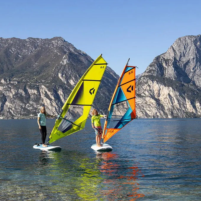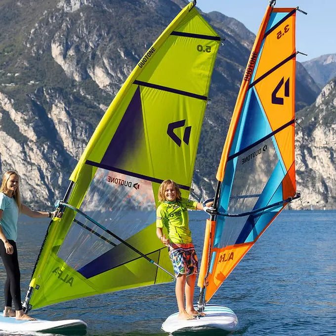 Das ALFA ist ein gutmütiger Frühgleiter, der Anfänger wie auch engagierte Aufsteiger über eine sehr lange Zeit begleitet. Es lässt sich spielerisch aus dem Wasser ziehen und auf allen Kursen wie auch bei Manövern ganz einfach steuern. Unterhalb der Gleitgrenze gibt es dem Fahrer wichtigen "Halt" und damit Stabilität, was besonders bei Kabbelwasser vorteilhaft ist. Einmal im Gleiten, bleibt das Segel sehr ausbalanciert. Der Winddruck kann dosiert in Vortrieb umgewandelt werden, damit der Fahrer immer volle Kontrolle über die gewünschte Geschwindigkeit behält. Die Verwendung von Dacron und Vinyl macht das ALFA nahezu unzerstörbar und ideal für den Schulungseinsatz. Dank der Materialflexibilität von Dacron und der einzigartigen Profilierung des ALFA lädt sich das Segel sanft und besonders voll auf. Dadurch entwickelt es kräftigen Vortrieb und besitzt sehr gute Angleiteigenschaften. Der Druckpunkt bleibt dabei bis weit in den Gleitbereich sehr stabil. Die Verwendung von Dacron und Vinyl macht das ALFA nahezu unzerstörbar und ideal für den Schulungseinsatz. Dank der Materialflexibilität von Dacron und der einzigartigen Profilierung des ALFA lädt sich das Segel sanft und besonders voll auf. Dadurch entwickelt es kräftigen Vortrieb und besitzt sehr gute Angleiteigenschaften. Der Druckpunkt bleibt dabei bis weit in den Gleitbereich sehr stabil.