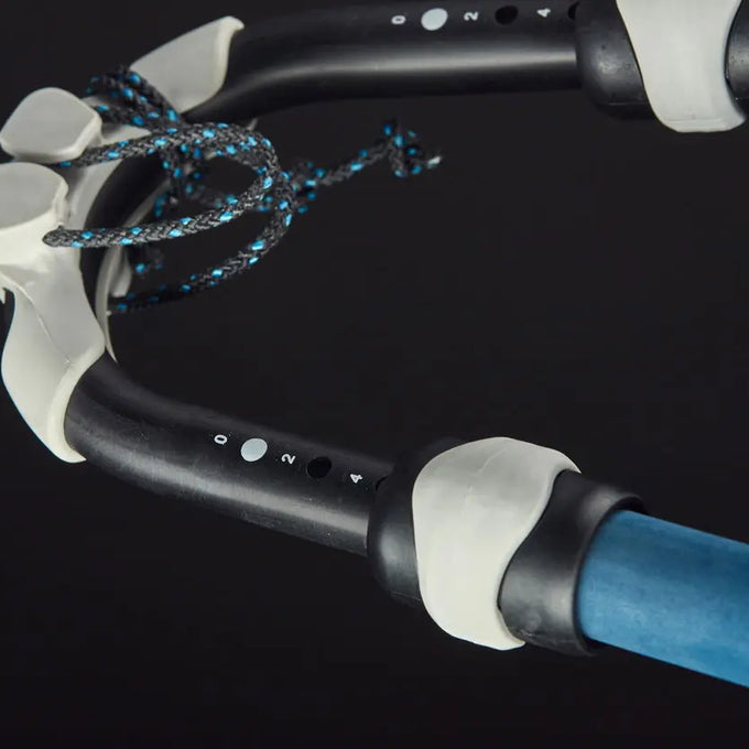 Das bewährte, einfach zu bedienende Frontstück fixiert die Gabel sicher am Mast ohne zu rutschen. Dank double-pin Verstellsystem lassen sich unterschiedliche Längen justieren. Vier Grundlängen decken die wichtigsten Segelgrößen ab. Die beiden kleinen Längen mit nur 25 mm Griffrohrdurchmesser sind speziell auf kleinere Hände zugeschnitten (große Längen mit 29 mm-Holmen). Beim EPX.AL Boom passt die universelle Biegelinie zu fast allen Segeltypen und -marken.