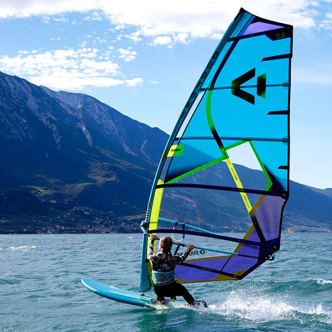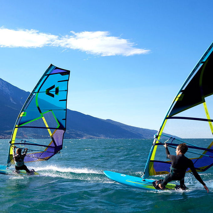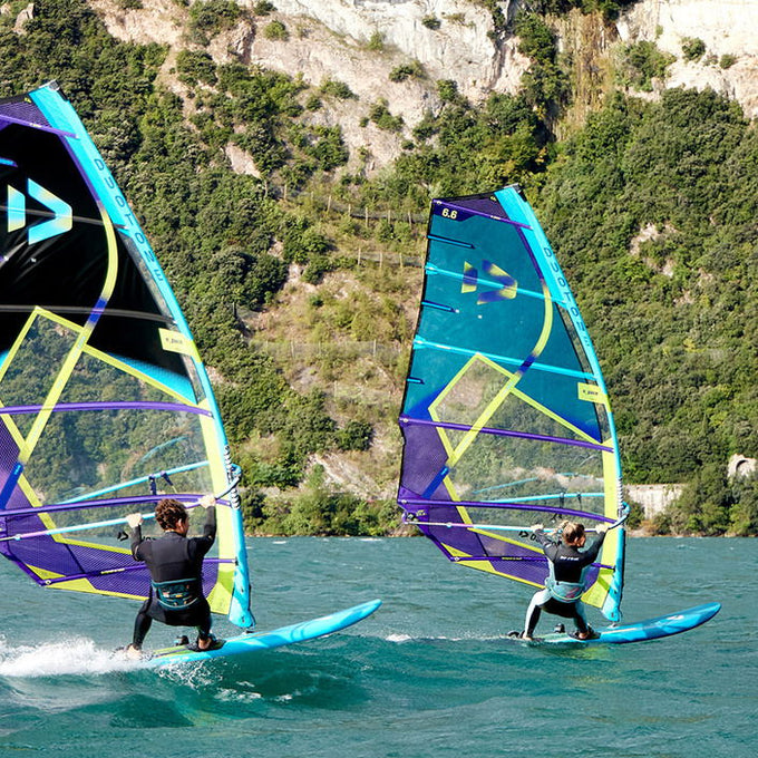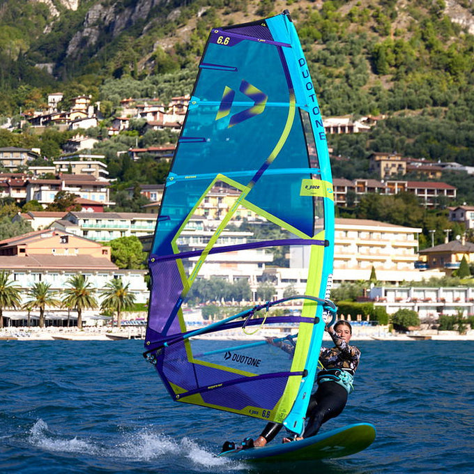 Vielseitigkeit ist die große Stärke des E_PACE: vielseitig beim Einsatzbereich, vielseitig bei unterschiedlichsten Windbedingungen. Dank des 3 IN 1 DESIGN mit stark reduzierter, im oberen Segelbereich fast gerader Vorliekskurve hat die Vorlieksspannung großen Einfluss auf das Loose Leech – und das wiederum auf den Charakter des Segels, je nach Trimm. Die zwei extrem weit voneinander liegenden MIN- bzw. MAX-Trimmpunkte bieten die Möglichkeit, einen unglaublich breiten Windbereich abzudecken und dem E_PACE ein ganz unterschiedliches Angleitverhalten wie auch Rigggefühl anzuerziehen. Im MIN-Trimm beschleunigt es bei geringstem Winddruck sehr kraftvoll und fühlt sich unglaublich leicht an - ideal auch zum Foilen. Im MAX-Trimm hingegen gibt es kontinuierlich Gas und bleibt dank starkem Loose Leech auch bei Überpower sehr gut zu kontrollieren. Ergo: Das neue No Cam E_PACE ist das perfekte Freeride Segel für alle Gewässer und Bedingungen und kombiniert Handling und Aufriggvorteile mit knackig-direktem Fahrgefühl und harmonisch-spritziger Leistungsentfaltung. Für besonders viel Spaß, Vertrauen, Kontrolle und wunderbar einfaches Windsurfen. Wir sind uns sicher, dass es kein No Cam Segel gibt, das einen grösseren Wind- und Einsatzbereich abdeckt als das E_PACE. Schlichtweg genial: Für den Foil-Einsatz gibt es beim E_PACE eine spezielle Öse am Achterliek, um das Segel noch aufrechter fahren zu können! Alle E_PACE sind auch in Monofilm-freier HD-Konstruktion erhältlich. Der extrem strapazierfähige Materialmix hat allerdings seinen Preis, auf den wir hinweisen wollen.