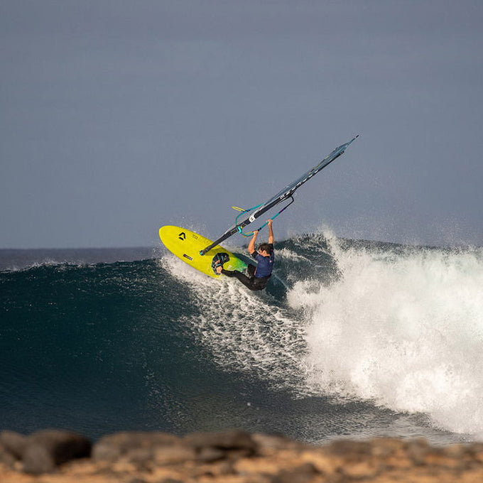 Die Umstellung unserer Boardtechnologie von der branchenüblichen Semi-Custom-Technologie auf unsere exklusive FULL CUSTOM PRODUCTION legte den Grundstein für alles Weitere (Details siehe unten bei TECH AND SHAPE DETAILS). Denn diese Technologie hob das Gewicht-Halbarkeits Verhältnis auf ein völlig neues Niveau. Und sie ermöglichte es uns endlich, jeden einzelnen Prototyp in der Fabrik zu fertigen, wie wir es seit über 30 Jahren mit unseren Segeln tun. Denn der beste Prototyp ist nichts wert, wenn er nicht reproduziert werden kann oder sich aufgrund von unterschiedlichen Materialien, Prozessen oder Gewicht anders anfühlt.