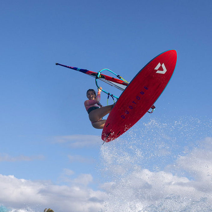 Die Basis der Entwicklung war also ein potentes New School Freestyle Board, das automatisch zu maximaler Beschleunigung und Kontrolle führt.Dieser Shape wurde dann so getunt, dass er auch als Waveboard in logo-hohen Side-on-Wellen funktioniert. Damit der ULTRA FreeWave in Side-on-Wave-Bedingungen funktioniert, musste er knackig, direkt werden und mit einem Tri-Fin-Setup funktionieren.Was sind also die wichtigsten Zutaten für ein großartiges Bump&Jump Freemove Board? Für uns geht es vor allem um expolisve Beschleunigung, Kontrolle und Manövrierfähigkeit.Aber was wirklich neu und einzigartig für ein solches Board ist, ist das knackig, direkte Gefühl. Anstatt langweilig zu sein, bietet der ULTRA FreeWave ein aufregend, sportliches Fahrgefühl, ohne dabei an Kontrolle oder Windrange zu verlieren. Das ist der Grund, warum der FreeWave den Zusatz ULTRA erhalten hat. Der ULTRA FreeWave ist nicht nur bei neuen Manövern sehr lebendig, sondern ist auch beim geradeaus Heizen super aufregend und zaubert deshalb während der gesamten Session ein Lächeln ins Gesicht.Unsere zweite Priorität war es, das erste Manöver-Cabrio zu entwickeln, das sowohl im Single- als auch im Tri-Fin-Setup funktioniert und seinen Charakter dramatisch verändert:>> Mit dem Tri-Fin-Setup bietet er 70% des GRIP 3-Wellenpotentials (Top/Bottom-Turns)>> Mit einem Single-Fin-Setup fühlt er sich jetzt viel aufregender an als sein Vorgänger>> Kombiniert mit einer reinrassigen Freestyle-Finne bietet der ULTRA FreeWave 70% des Hardcore-Freestyle-Potenzials vom SKATEAber wir haben hier noch nicht aufgehört. Anstelle der branchenüblichen Semi-Custom Technologie wird der ULTRA FreeWave nun in einer FULL CUSTOM Technologie gebaut, wie sie auch bei High-End Custom Boards zum Einsatz kommt. Dadurch sind beide Versionen ca. 200g leichter als die Vorgängermodelle, aber dennoch wesentlich stabiler.Du siehst also, der legendäre FreeWave wurde in allen Belangen verbessert und heißt nun verdientermaßen ULTRA FreeWave.Den ULTRA FreeWave gibt es in 6 Größen von 74, 84, 94, 104, 112 und 119 Litern für schwerere Fahrer und leichteren Wind.Erhältlich in 2 FULL CUSTOM-Konstruktionen:+ FULL CUSTOM WOOD Technologie: Keiner bietet ein besseres Verhältnis aus Preis - Gewicht - Haltbarkeit.+ FULL CUSTOM SLS-Technologie: STARK-LEICHT-ÜBERLEGEN