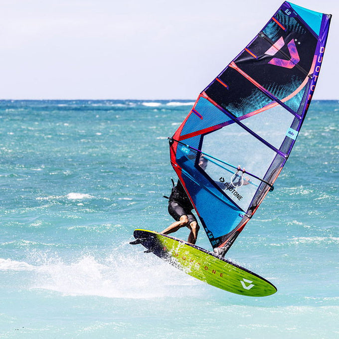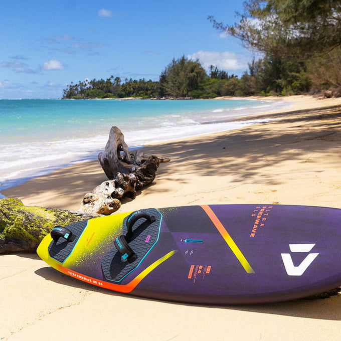 Die Basis der Entwicklung war also ein potentes New School Freestyle Board, das automatisch zu maximaler Beschleunigung und Kontrolle führt.Dieser Shape wurde dann so getunt, dass er auch als Waveboard in logo-hohen Side-on-Wellen funktioniert. Damit der ULTRA FreeWave in Side-on-Wave-Bedingungen funktioniert, musste er knackig, direkt werden und mit einem Tri-Fin-Setup funktionieren.Was sind also die wichtigsten Zutaten für ein großartiges Bump&Jump Freemove Board? Für uns geht es vor allem um expolisve Beschleunigung, Kontrolle und Manövrierfähigkeit.Aber was wirklich neu und einzigartig für ein solches Board ist, ist das knackig, direkte Gefühl. Anstatt langweilig zu sein, bietet der ULTRA FreeWave ein aufregend, sportliches Fahrgefühl, ohne dabei an Kontrolle oder Windrange zu verlieren. Das ist der Grund, warum der FreeWave den Zusatz ULTRA erhalten hat. Der ULTRA FreeWave ist nicht nur bei neuen Manövern sehr lebendig, sondern ist auch beim geradeaus Heizen super aufregend und zaubert deshalb während der gesamten Session ein Lächeln ins Gesicht.Unsere zweite Priorität war es, das erste Manöver-Cabrio zu entwickeln, das sowohl im Single- als auch im Tri-Fin-Setup funktioniert und seinen Charakter dramatisch verändert:>> Mit dem Tri-Fin-Setup bietet er 70% des GRIP 3-Wellenpotentials (Top/Bottom-Turns)>> Mit einem Single-Fin-Setup fühlt er sich jetzt viel aufregender an als sein Vorgänger>> Kombiniert mit einer reinrassigen Freestyle-Finne bietet der ULTRA FreeWave 70% des Hardcore-Freestyle-Potenzials vom SKATEAber wir haben hier noch nicht aufgehört. Anstelle der branchenüblichen Semi-Custom Technologie wird der ULTRA FreeWave nun in einer FULL CUSTOM Technologie gebaut, wie sie auch bei High-End Custom Boards zum Einsatz kommt. Dadurch sind beide Versionen ca. 200g leichter als die Vorgängermodelle, aber dennoch wesentlich stabiler.Du siehst also, der legendäre FreeWave wurde in allen Belangen verbessert und heißt nun verdientermaßen ULTRA FreeWave.Den ULTRA FreeWave gibt es in 6 Größen von 74, 84, 94, 104, 112 und 119 Litern für schwerere Fahrer und leichteren Wind.Erhältlich in 2 FULL CUSTOM-Konstruktionen:+ FULL CUSTOM WOOD Technologie: Keiner bietet ein besseres Verhältnis aus Preis - Gewicht - Haltbarkeit.+ FULL CUSTOM SLS-Technologie: STARK-LEICHT-ÜBERLEGEN