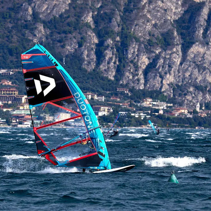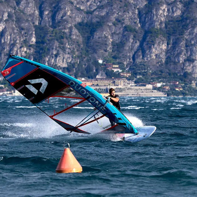Nach dem Redesign im Jahr 2022 haben wir jede einzelne Größe beständig modifiziert und optimiert und können mit Fug und Recht behaupten, dass die von uns vorgenommenen Änderungen zu den besten Slalom-Rennsegeln geführt haben, die wir je hergestellt haben.Wie können wir diese Behauptung untermauern? Nun, zunächst einmal waren wir 2023 die einzige Marke, die ein PWA-Slalomrennen mit Pierre Mortefon und Jordy Vonk gewann, die beide gegen Foils siegen konnten. Wenn man dies zu den 8 Slalom-Weltmeistern und 20 Podiumsplätzen im Jahr 2022 hinzufügt, spricht die Rennstatistik dieser Segel für sich selbst. Mit vielen Junioren Titeln ist das WARP_FIN nicht nur das beste Rennsegel für unsere professionellen Weltklasse-Athleten, sondern auch für unsere leistungsstärksten Junioren. Daher ist as WARP_FIN das vielseitigste und beste Fin-Slalom-Rennsegel das wir je gebaut haben.Was haben wir getan, um so ein unglaubliches Segel zu bauen? Erstens ist das WARP_FIN direkt "out of the box" einsatzbereit.Im Gegensatz zu den meisten anderen Slalom-Rennsegeln braucht das WARP_FIN keine zeitraubende Feinabstimmung. Auch bei unseren Slalom-Rennsegeln ist es unser Ziel, dass du dein Segel einfach aus dem Sack nimmst, es nach den visuellen Markierungen aufbaust, und du kannst sicher sein, dass du genau die gleiche Performance hast wie unser Racing-Team. Im Rennsport zählen maximale Beschleunigung und Kontrolle über das Material, wenn es darum geht, ganz oben auf dem Treppchen zu stehen. Du brauchst ultimative Geschwindigkeit und Kontrolle auf dem Kurs, aber auch die Möglichkeit, viele Stunden am Stück zu surfen, um am Ende der Woche zu gewinnen. Das ausgeprägtere High Aspect Ratio Design, vor allem in den größeren Größen, mit verkürzter Gabelbaumlänge und nach vorne versetztem Profil, benötigt weniger Kraft, liegt leichter in der Hand und bietet mehr Kontrolle am oberen Windlimit. Zudem stabilisieren steifere Tubelatten den Shape bis in den Overpowerbereich und man kann selbst Monsterböen problemlos in zusätzlichen Speed umwandeln.Insgesamt ist das WARP_FIN ausgewogener, weniger anstrengend und noch besser kontrollierbar. Andererseits wurde auch die Beschleunigung verbessert, um nach dem Start und bei Halsen Boden gutzumachen. Basierend auf dem erfolgreichen NO COMPROMISE DESIGN-Konzept wurde die Druckpunktposition etwas weiter nach oben verlegt, um das Board zu liften was zu einer verbesserten Gleitpower und einer explosiven Beschleunigung dank des geringeren Widerstands führt. Das NO COMPROMISE DESIGN verhindert, dass der Vortrieb abrupt einsetzt und mit viel Kraft abgefangen werden muss, sondern sich wesentlich weicher aufbaut als bei anderen Power Slalom Segeln! Das entlastet den Piloten, gibt Powerreserven für die gesamte Distanz und volle Konzentration auf das Renngeschehen. Weitere positive Nebeneffekte der veränderten Profilgeometrie mit höherem Druckpunkt: Der Trimm des Boards verbessert sich wodurch man das Board einfacher über das Rail fliegen lassen kann. In Kombination mit der konkurrenzlos weichen Camber-Rotation halsen die Segel noch müheloser und schneller.In den letzten 12 Monaten wurde jede einzelne Größe durch Modifikation der Vorliekskurve, der Profilverteilung und des Twistmusters zur Perfektion getweakt. Daher bieten alle Grössen jetzt eine noch explosivere Beschleunigung und decken einen noch größeren Windbereich ab.
