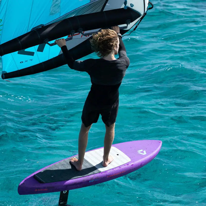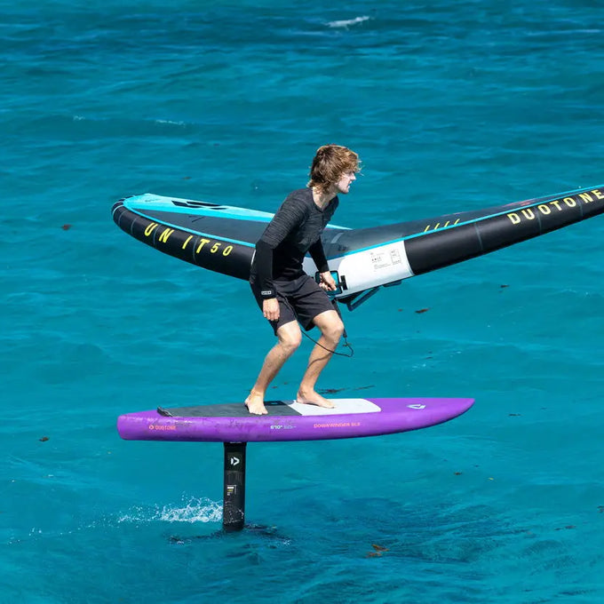 Effizienz ohne Kompromisse! Unser Downwinder wurde komplett überarbeitet und kommt in drei schlanken und leichtgewichtigen Shapes, mit denen du einfach aufs Foil kommst und meilenweit fliegen kannst!Eines der ersten Boards, aus der Boardschmiede der Spencer-Brüder Finn und Jeffrey. Nachdem sie zum Team Duotone gestoßen sind, war das neue Design der Downwinder-Shapes ihr erstes Projekt. Das Ergebnis sind sportliche, schnelle und schmale Designs mit effizientem Gleitverhalten, die mit nur wenigen Paddelschlägen auf die kleinste Bodenwelle beschleunigen. Für 2024 gibt es vier Modelle – von 6'4" x 19" und 6'10" x 20" über das mittelgroße 7'2" x 21" bis hin zum stabilen und leichten 7'8" x 22,5", in den Größen 85, 95, 115 und 135 l.Mit einem niedrigen Rocker, einer gestreckten Outline und sauberen Bodenkonturen lassen sich die Boards unglaublich leicht auf Startgeschwindigkeit bringen. Einmal in Bewegung, lassen sich die schlanken Pin Tails mit ausgeprägten Rail Facetten bei den größeren Modellen leicht ins Wasser drücken, um das Board und das Foil für den Take-Off aufzupumpen. Die abgerundeten Rails im Nose-Bereich neigen weniger dazu zu verkanten und das Board in ungewollte Richtungen zu lenken. Das macht den Take-Off und die Touchdowns fehlerverzeihend und neutral, so dass du dich voll und ganz auf die Bumps konzentrieren kannst anstatt auf dein Board.Durch die sensationellen Gleiteigenschaften und die schnelle Beschleunigung ist der Downwinder auch eine echte Waffe zum Wing Foiling bei Leichtwind!Durch die leichtgewichtige 100% Carbon-Konstruktion sind diese Boards entsprechend empfindlich, aber da das Gewicht des Boards für die Paddel-Performance entscheidend ist, haben wir uns bewusst für diese kompromisslose Technologie entschieden.