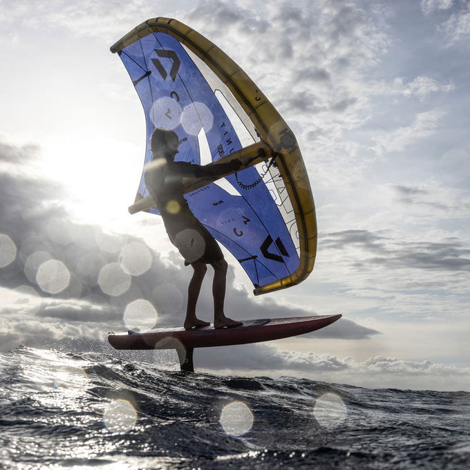 Optimale Maße für Downwinder in kleineren Wellen und frühestes Abheben beim Wing Foilen bei leichtem Wind.