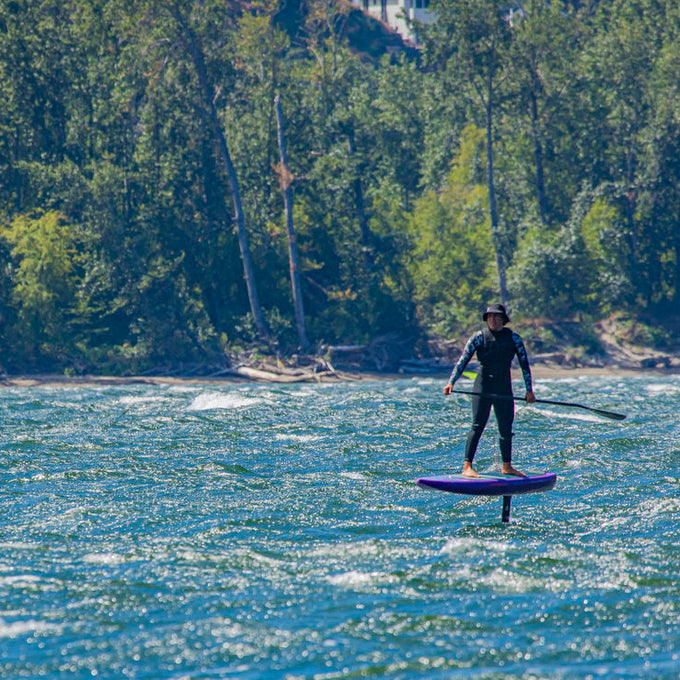 Die Volumenverteilung und die Rail-Formen bieten große Stabilität für einfache Paddle-Ups und superleichte Starts beim Wing Foilen.