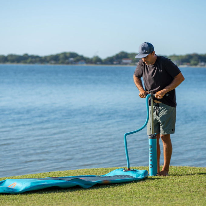 Der Sky Air ist mit einer verlängerten Carbon-Platte inklusive integrierter Foil-Tracks ausgestattet und bietet maximale Flexibilität für unterschiedliche Setups sowie verbesserte Performance. Optionale Fußschlaufen-Einsätze ermöglichen eine individuelle Anpassung an verschiedene Fahrstile und Vorlieben. Dank passendem Rucksack mit Rollen und unserer Multi Pumpe lässt sich der Sky Air einfach transportieren und ist jederzeit bereit für das nächste Abenteuer.