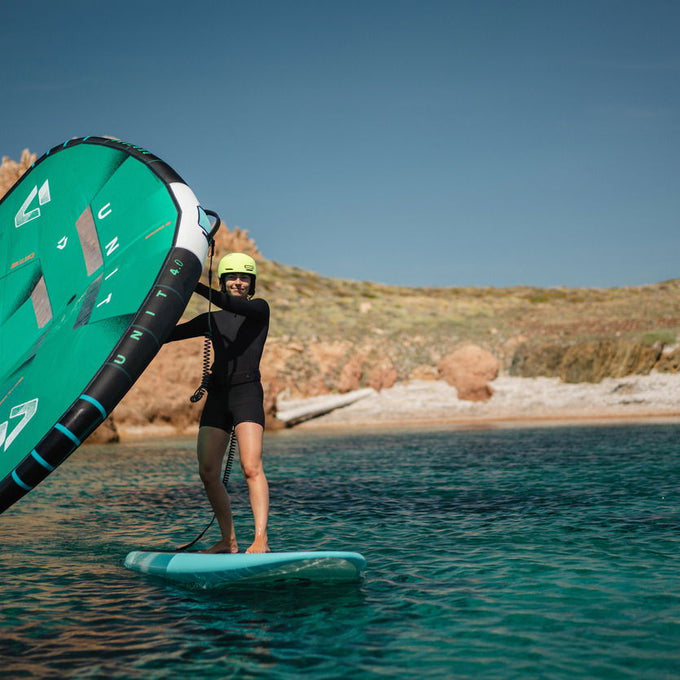 Auch mit zunehmendem Fortschritt bleibt der DUOTONE Sky Start agil und kompakt – ideal, um kontrollierte Flüge zu genießen und gezielt an Wenden und Halsen zu arbeiten. Die kratz- und stoßresistente Dura Shield Technologie (DST) sorgt für hohe Langlebigkeit, während das großzügige, weiche EVA-Deckpad Komfort und Sicherheit bietet. So wird Wing Foiling für alle zugänglich, sicher und angenehm.