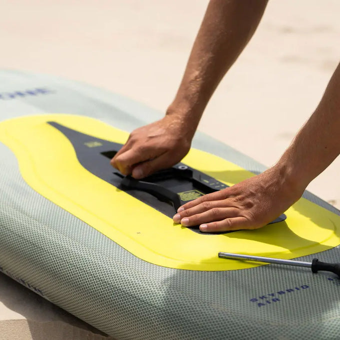 Der Skybrid Air ist in drei Größen erhältlich: 5'10" (85l), 6'1" (100l) und 6'4" (115l). So passt sich das Board einer Vielzahl von Vorlieben und -Bedingungen an. Jedes Board wird zusammen mit einem handlichen Rucksack und unserer innovativen Multi-Pumpe geliefert, die sowohl mit dem Board als auch mit dem Wing kompatibel ist, sodass der Transport und Setup zum Kinderspiel werden.