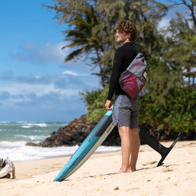 Der STASH wurde über mehrere Monate hinweg von unserem Wing- und Kite-Designer Ken Winner in enger Zusammenarbeit mit den Downwind-Experten Finn und Jeffrey Spencer entwickelt. Das Ziel: ein Parawing, der nicht nur als Antrieb aufs Foil dient, sondern auch die besonderen Herausforderungen des Downwind-Foilings meistert – und damit das ultimative Flugerlebnis noch zugänglicher macht.