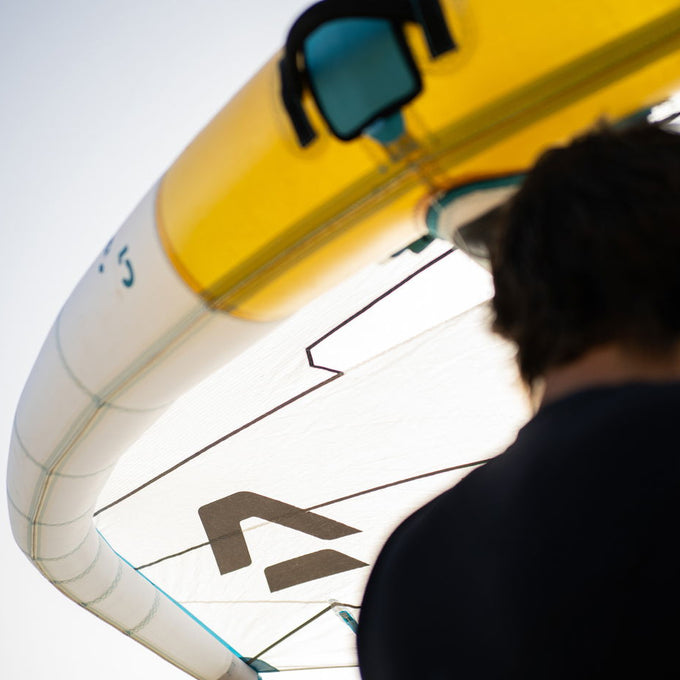 Ein neuer, steiferer Leading-Edge Griff ermöglicht bessere Kontrolle und exzellente Steuerung des Wings auf der Welle.