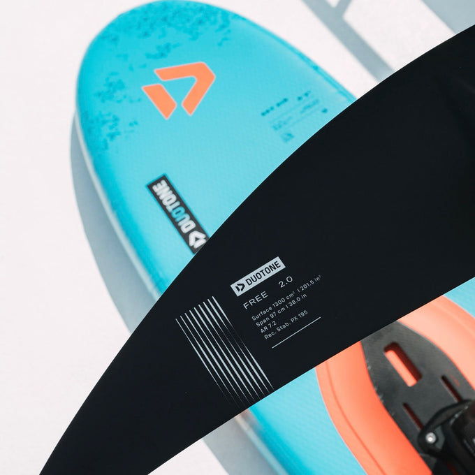 Die Hybrid-Konstruktion aus Carbon- und Glasfasern verbindet geringes Gewicht mit hoher Robustheit und angenehmem Flex. So entsteht ein stimmiges Verhältnis aus Komfort, Haltbarkeit und Performance und macht den Free 2.0 zu einem leistungsstarken, zugleich preislich attraktiven Freeride/Allround-Foil.