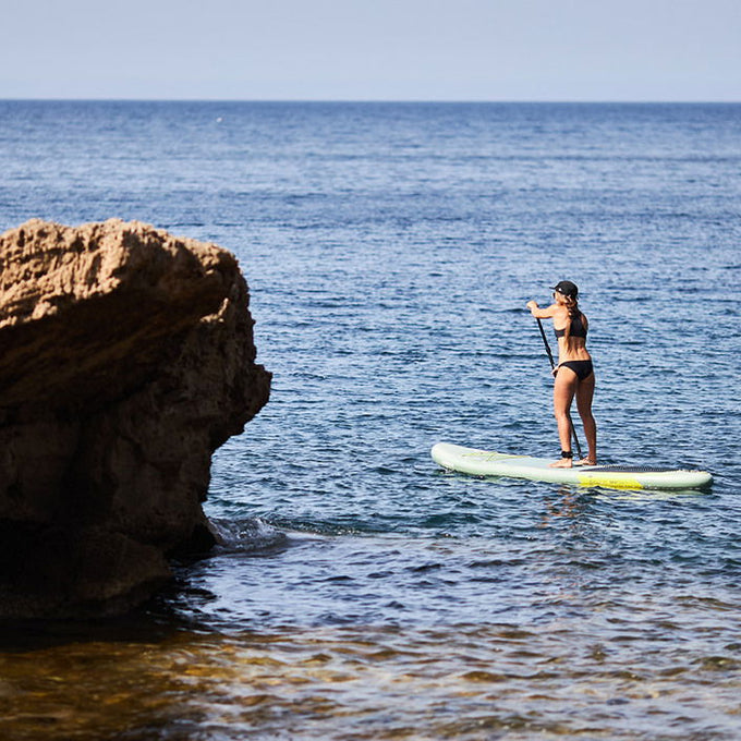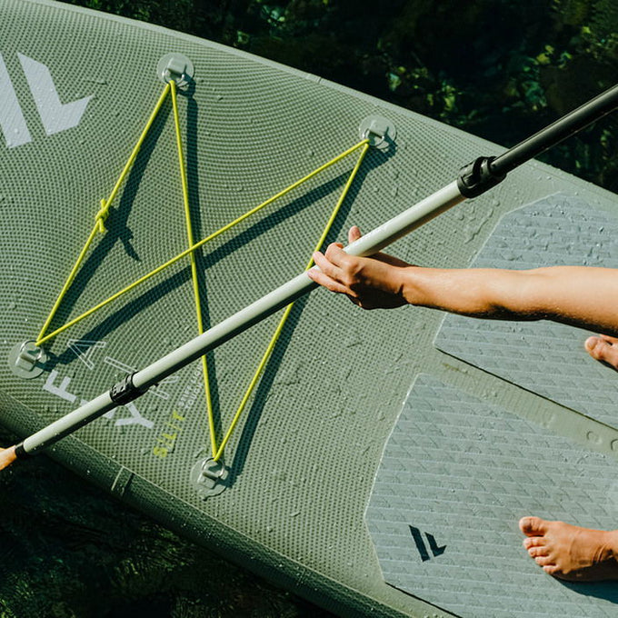 DIE GRÖSSE IST DOCH ENTSCHEIDEND! Für 20.25 haben wir unser iSUP-Sortiment grundlegend überarbeitet. Während unsere bewährten Shapes unverändert bleiben, haben wir die Konstruktion komplett überarbeitet. Alles begann vor über 2 Jahren mit einer großen Umfrage unter unseren Kunden, bei der wir sie nach den wichtigsten Kaufkriterien fragten. Obwohl wir bereits eine ziemlich gute Vorstellung hatten, waren die Ergebnisse überwältigend. Für über 90% der Kunden sind nur 2 Dinge entscheidend: Gewicht und Packvolumen. Mit diesem Fokus haben wir mit unserem Lieferanten ein völlig neues Material entwickelt. Anstelle des branchenüblichen gestrickten Materials haben wir für alle unsere Platten auf gewebtes Drop-Stitch-Material umgestellt. Dieses Material ist 20 % leichter, aber trotzdem noch steifer. Ebenso wichtig ist, dass das gewebte Material viel einfacher und kompakter zu rollen ist. Alle Panele werden jetzt durch Schweißen statt durch Kleben miteinander verbunden. Das bedeutet nicht nur eine deutliche Verbesserung der Haltbarkeit, sondern auch eine erhebliche Gewichtseinsparung durch den Wegfall des schweren Klebstoffs. Schließlich wurde auch das EVA-Deckpad optimiert. Die zusätzliche Teilung in der Mitte reduziert das Gewicht weiter und sorgt für ein noch kompakteres Aufrollen. Das Ergebnis kann sich wirklich umwerfend, denn unsere S | L | T Boards sind die wohl leichtesten und kompaktesten iSUPs auf dem Markt (bis zu 20% leichter als ihre Vorgänger bei einem um ca. 40% reduzierten Packvolumen).