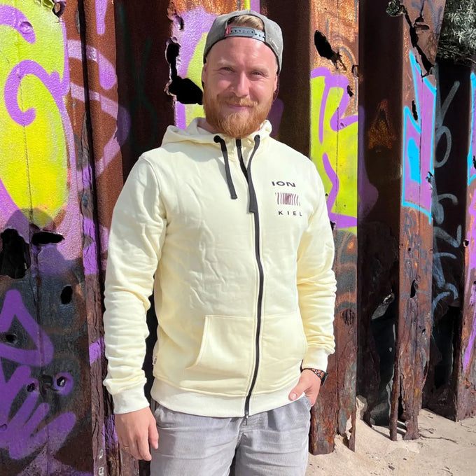Der ION Hoody Zip x DESTINATION Herren in gelb ist dein neuer Begleiter für jede Jahreszeit. Mit einem kleinen Print von ION und Kiel auf der Brust und einem großen Rückenprint mit einer Palme im Wind, bringt diese Kapuzenjacke sommerliche Vibes und Dynamik in deinen Alltag. Der Reißverschluss sorgt für zusätzliche Vielseitigkeit und Komfort. Aus hochwertiger Baumwolle gefertigt, garantiert dieser limitierte Hoody Zip exklusive bei uns im Surfshop Kiel angenehmen Tragekomfort und eine hervorragende Passform. Zeige deinen Style und deine Begeisterung für den Wassersport mit diesem einzigartigen Stück!