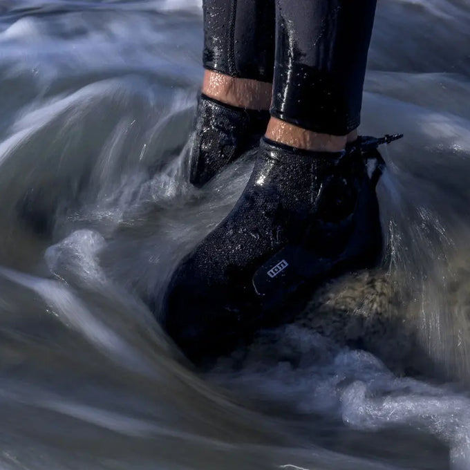 Die Ballistic Socks mit Roundtoe gehören zu IONs Premium Footwear Linie. Mit den neuesten Technologien wie Max_Flex und Plasma Plush 2.0 setzen die Ballistic Socks neue Akzente. Wenn du auf der Suche nach optimaler Wärmeleistung und bestmöglichem Schutz für deine Füße bist, dann sind die Ballistics genau das richtige für dich. Diese Schuhe geben dir Halt und Flexibilität an den entscheidenden Stellen und bieten trotz der 3/2mm dicken Gummi- und Neoprenschichten ein unglaubliches Boardgefühl. Die robuste Kevlar-Sohle lässt dich unbesorgt auf alles treten, was dir in die Quere kommt und dank der raffinierten Konstruktion kannst du dir die Schuhe auch mit eiskalten Händen leicht an- und ausziehen.