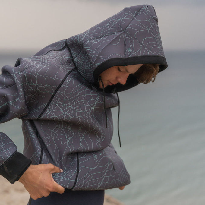 Das hier ist kein gewöhnlicher Hoody. Der Neo Hoody Reversible für Männer aus 2,0 mm + 1,0 mm Neopren hält dich warm, egal ob du gerade deinen Kite aufbaust oder zwischen den Sessions chillst. Mit der Öffnung für das Trapez kannst du den Hoody sogar auf dem Wasser tragen. Die verstellbare Kapuze bietet extra Wärme, wenn der Wind auffrischt.