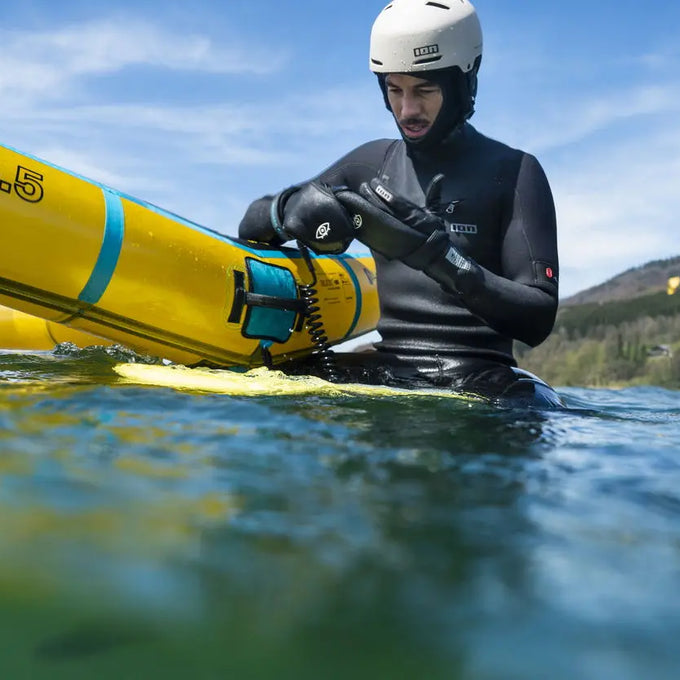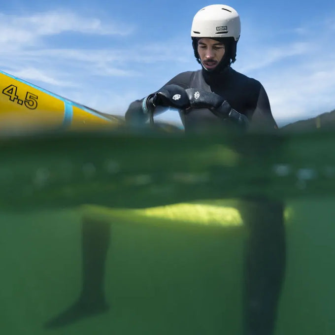 Die Hybrid Gloves sind die Neulinge in IONs Handschuhsortiment. Diese Handschuhe sind fürs Kiten, Windsurfen und Wingsurfen konzipiert. Einerseits schützen sie vor kühlen Winden und gleichzeitig bieten sie ein direktes Gefühl an Bar, Boom und Handles. Wie der Begriff Hybrid schon sagt, hast du die Wahl. Du kannst den Neoprenüberzug entweder über deine frierenden Finger stülpen oder ihn im "Handschuhfach" lassen. Die Fingerabdeckung bietet eine 1mm dicke Isolierung mit der Option, eine 2,5mm dicke Neoprenschicht über die Hand zu ziehen. Die Handschuhe sind wasserabweisend und werden mit einem Klettverschluss geschlossen.