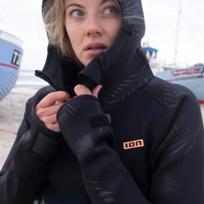 Auf dem Wasser oder am Strand - die Neo Shelter Jacket Amp Women dient an windigen Tagen als zusätzliche wärmende Schicht. Ihr 2mm dickes Neopren hält dich stets warm. Ein flexibles und wasserabweisendes Material lässt die Kälte nicht zu Nahe kommen, während die ergonomische und verstellbare Kapuze dafür sorgt, dass alles an seinem Platz bleibt und selbst starken Winden widersteht! Der Trapezhaken kann durch eine kleine Öffnung geführt werden, damit die Jacke auch beim Riden ganz bequem über dem Trapez getragen werden kann.