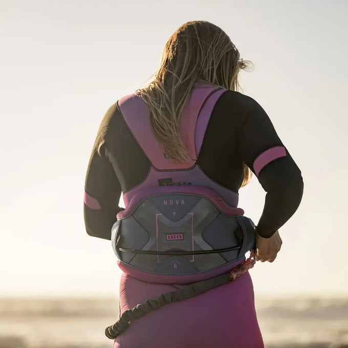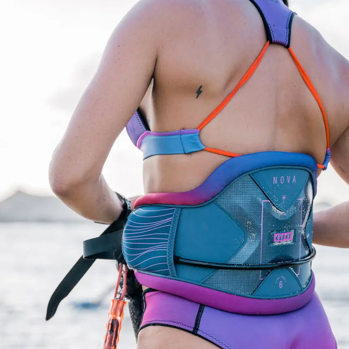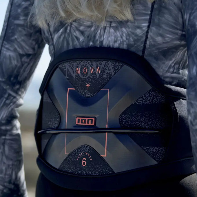 Das Nova ist das perfekte Trapez für alle, die Flexibilität in Kombination mit guten Supporteigenschaften im Rückenbereich suchen. Mit einem Flex-Index von 6 gehört es zu den mittelharten bis weicheren Trapezen der ION Range. Das Nova wurde im Hinblick auf die Gesundheit der Athletin entwickelt und verfügt über ein austauschbares Ergo_Pad auf der Innenseite. Das Polster ist mit einem integrierten Kanal und erhöhten Triggerpunkten auf der Außenseite versehen und wird in 2 verscheidenen Stärken mitgeliefert. Diese präventieren Verletzungen im unteren Rückenbereich, verringern Schmerzen und erhöhen den Tragekomfort. Beide Pads sind im Lieferumfang enthalten und werden mit einem sehr starken Klettverschluss befestigt. Probiere einfach beide aus und entscheide dich für das, mit dem du dich am wohlsten fühlst. Flexible Seitenteile und ein integrierter flexibler Gurt sorgen für ausreichend Bewegungsfreiheit, während die 3D_Plus-Spine den Rücken stützt. Das Ergebnis ist eine gute Balance zwischen Bewegungsfreiheit und Unterstützung der Rückenmuskulatur durch die höher geschnittene Form. Das Trapez ist dank dem Einsatz der Curv-Teilkonstruktion, dem nicht-wasserabsorbierenden HD_Foam und der schlanken Spectre Bar (inklusive Kite-Haken) ein absolutes Leichtgewicht. Die Curv_Flaps der Spectre Bar sorgen für eine nahtlose und optimale Kraftverteilung im gesamten Trapez. Das Nova kommt mit einem integrierten Kite_Knife Multitool 2.0.