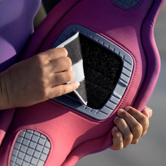 Das austauschbare Ergo_Pad auf der Trapezinnenseite bietet optimale Lendenwirbelunterstützung in zwei Profilen (mittlere und hohe Unterstützung). Für individuelle Rückenunterstützung & Verletzungsprophylaxe.