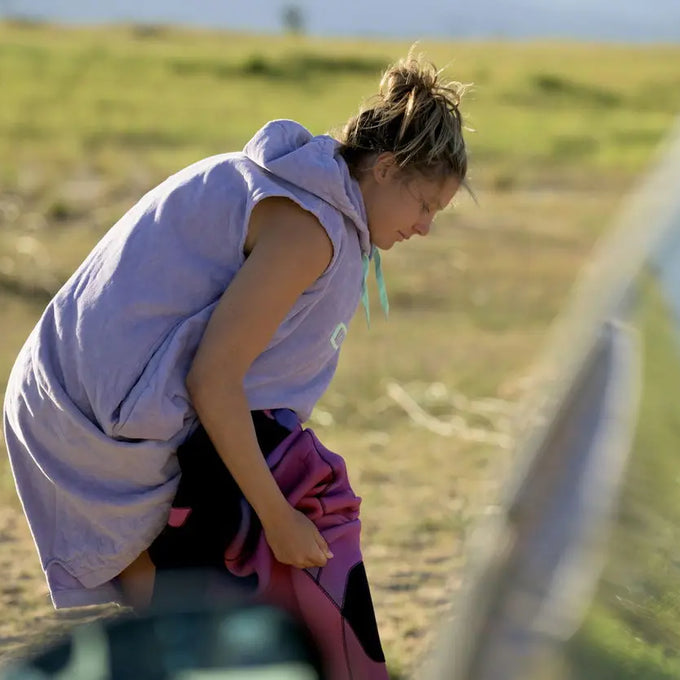 Aus- und Umziehen an Ort und Stelle, ohne dabei mehr zu zeigen, als du willst. Dieser Poncho besteht aus 100% kuschelig warmer Baumwolle, die dich ebenso schnell abtrocknet. Du kannst außerdem die Kapuze zuziehen und dich nach einer kalten Session verkriechen. Die praktischen Seiteneingriffe machen es einfach, sich im Poncho Core umzuziehen.