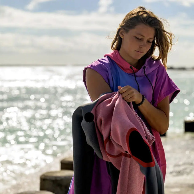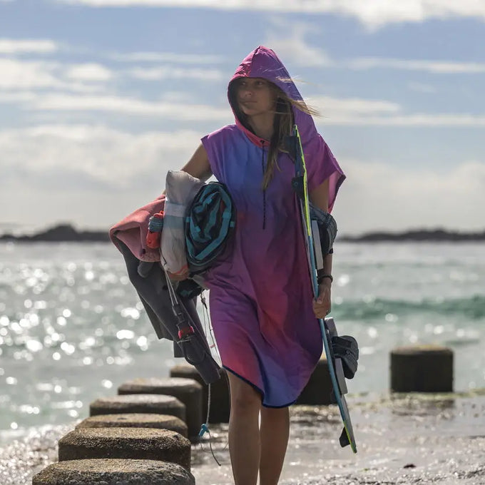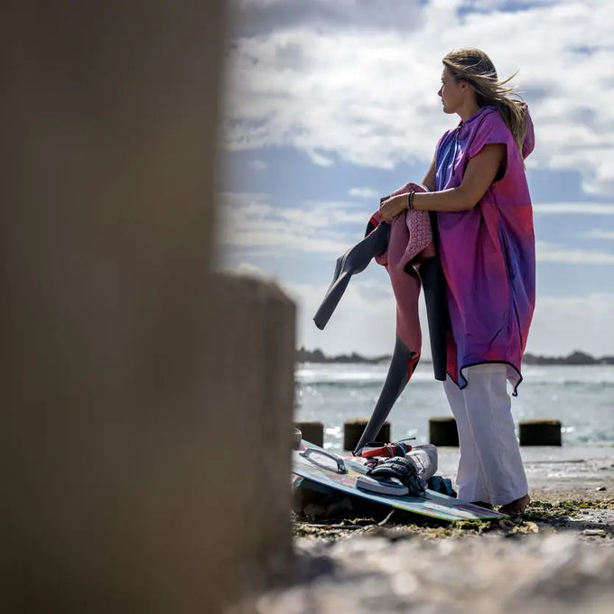 Diese mobile Umkleidekabine ist aus schnell trocknenden und superleichten Microfaser gefertigt. Dank des kleinen Packmaßes passt der Poncho in jede Tasche und fehlt auf keinem Trip! Die Kapuze des Ponchos kannst du zusammenziehen und dich nach einer kalten Session verkriechen. In der Innentasche mit Reißverschluss kannst du Handy, Schlüssel und Portemonnaie verstauen, auch wenn du nichts anderes als dieses stylische Accessoire trägst. Die praktischen Seiteneingriffe machen es einfach, sich im Poncho Select Women umzuziehen.