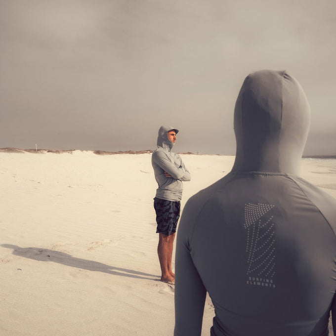 Die verlängerten Ärmel mit Daumenloch und Watch_Window sind nicht nur praktisch, sondern verlängern den Sonnenschutz bis auf die Handrücken. Mit dem Slip_Loop lässt sich das Top an der Boardshort fixieren.