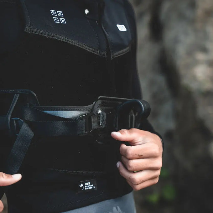Innovation hört bei ION nie auf. Mit der Neuentwicklung des Rush können nun auch Wing Foiler von den Vorzügen einer Weste mit integriertem Trapez profitieren. Das Rush vereint die Vorteile aus Weste und Trapez: Schutz und Funktionalität. Die Weste ist individuell anpassbar und du kannst wählen, ob du das Trapez für deine Session anbringen oder herausnehmen möchtest. Gleiches gilt für die Protektoren, die Schutzpolster im Rücken- und Brustbereich können je nach Wunsch herausgenommen werden. Die Schulterpolster hingegen lassen dich dein Foil entspannt auf der Schulter ins Wasser tragen. Das Rush ist deine optimale All-in-One-Lösung. Die Öse an der Hinterseite der Weste dabei hilft, den Protektor einfacher anzupassen. Bitte beachte, dass die Öse nicht zum Befestigen einer Leash vorgesehen ist. Um die Leash an der Hüfte zu befestigen, empfehlen wir den ION Hüftgurt.