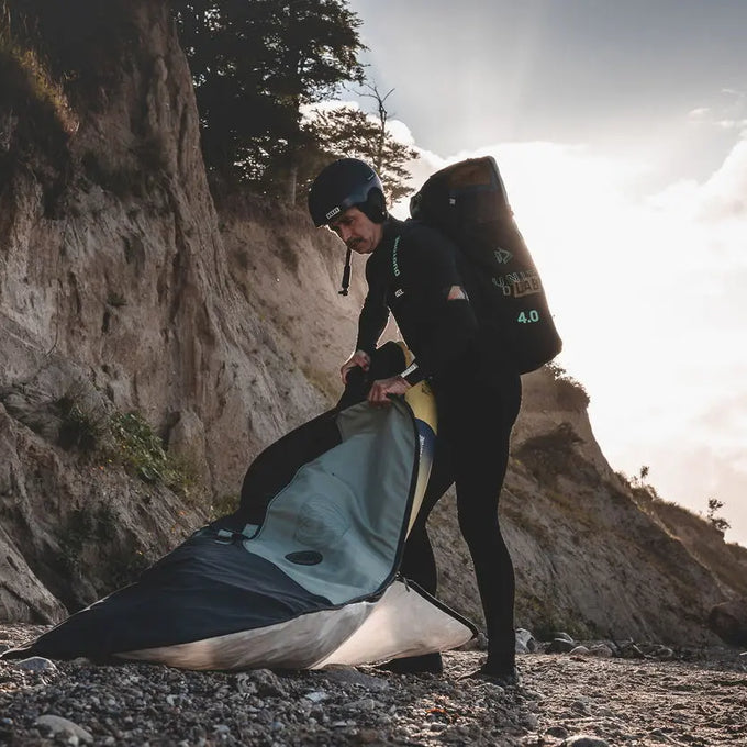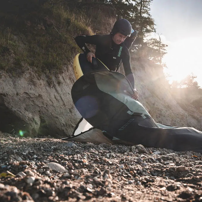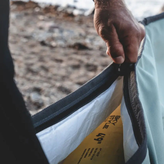 Du willst mit leichtem Gepäck reisen? Die Wing Boardbag Core ist dein minimalistischer Reisebegleiter, der während der Autofahrt bis zum Strand bestens auf deine Boards aufpasst. Das robuste, zu 100% recycelte Außenmaterial und die 5mm dicke Polsterung rundherum schützen deine Boards zuverlässig vor Macken und Kratzern und halten außerdem das Wachs von deinen Autositzen fern. Helles PE auf der Unterseite der Tasche reflektiert Sonneneinstrahlung und sorgt für ein kühles Klima im Inneren.